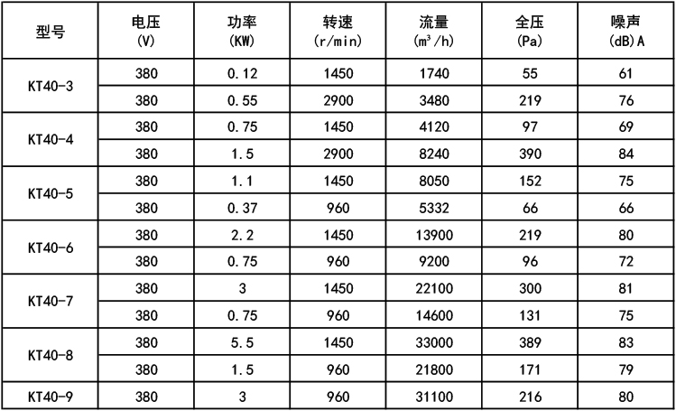 KT40型电机外置轴流通风机适用于一般工厂、仓库、办公室、住宅内通风换气或加强暖气散热之用。也可在较长的排气管道内间隔串联安装,以提高管道中的风压。本系列产品可根据用户的需要,在结构设计上采用电机外置(电机在机壳上)皮带传动,其最大作用可以排高温气体或防潮气体。