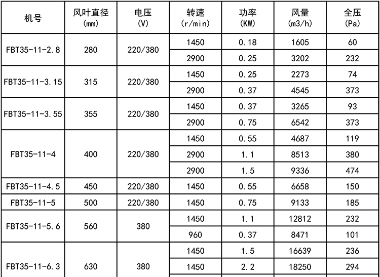 FBT35-11系列的电机配用隔爆型电机,可用于输送腐蚀性且易燃易爆的气体使用。