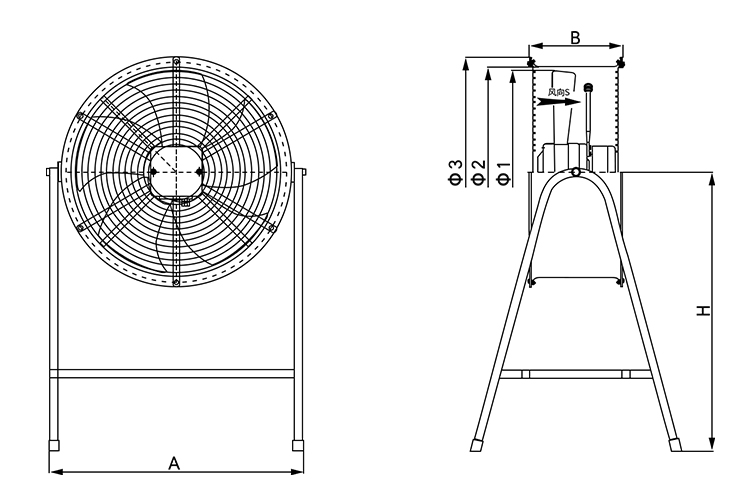 风机适用的环境温度为-30℃~+60℃之间,相对湿度不大于90%,海拔高度不超过1000m。