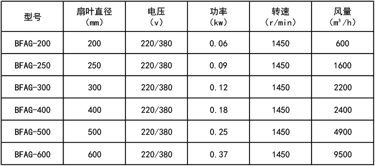 BFAG隔爆型轴流式交流排风扇(以下简称排风扇)其防爆性能按GB3836.1 《爆炸性环境用防爆电气设备隔爆型电气设备"d"》的规定制成隔爆型。防爆标志 为ExdⅡBT4,适用于ⅡB类T4组以下组别的爆炸性气体的环境。本品具有防爆性 能可靠、风量大、噪声小、耗电省等优点。