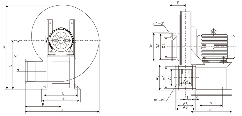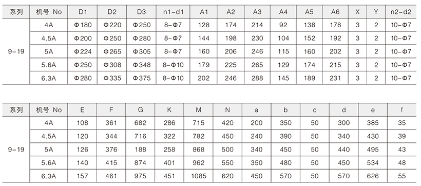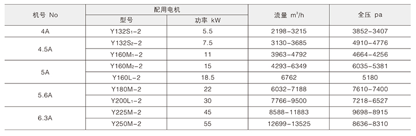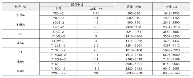№4~6.3主要由叶轮、机壳、进风口、支架等组成;No7.1~16主要由叶轮、