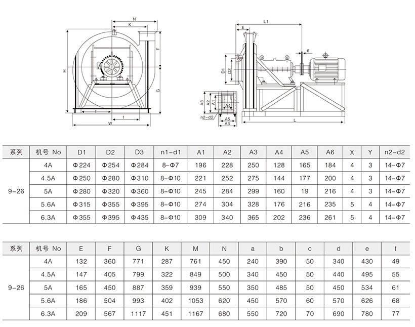风机的传动方式为A式(№4~6.3)和D式(№7.1~16)两种。