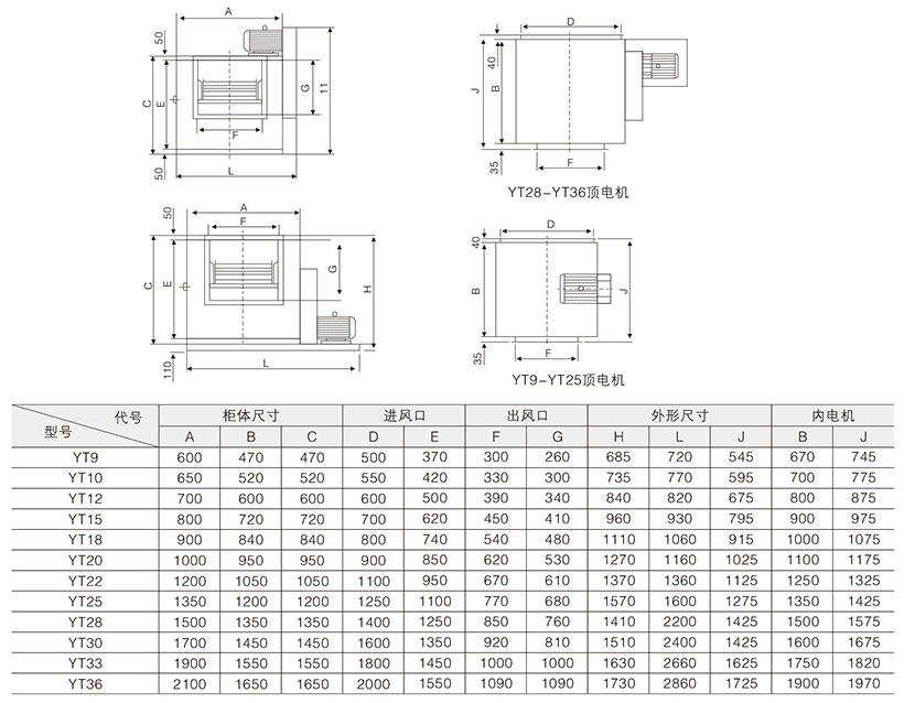 HTFC(YT)系列低噪声柜式离心风机技术参数表